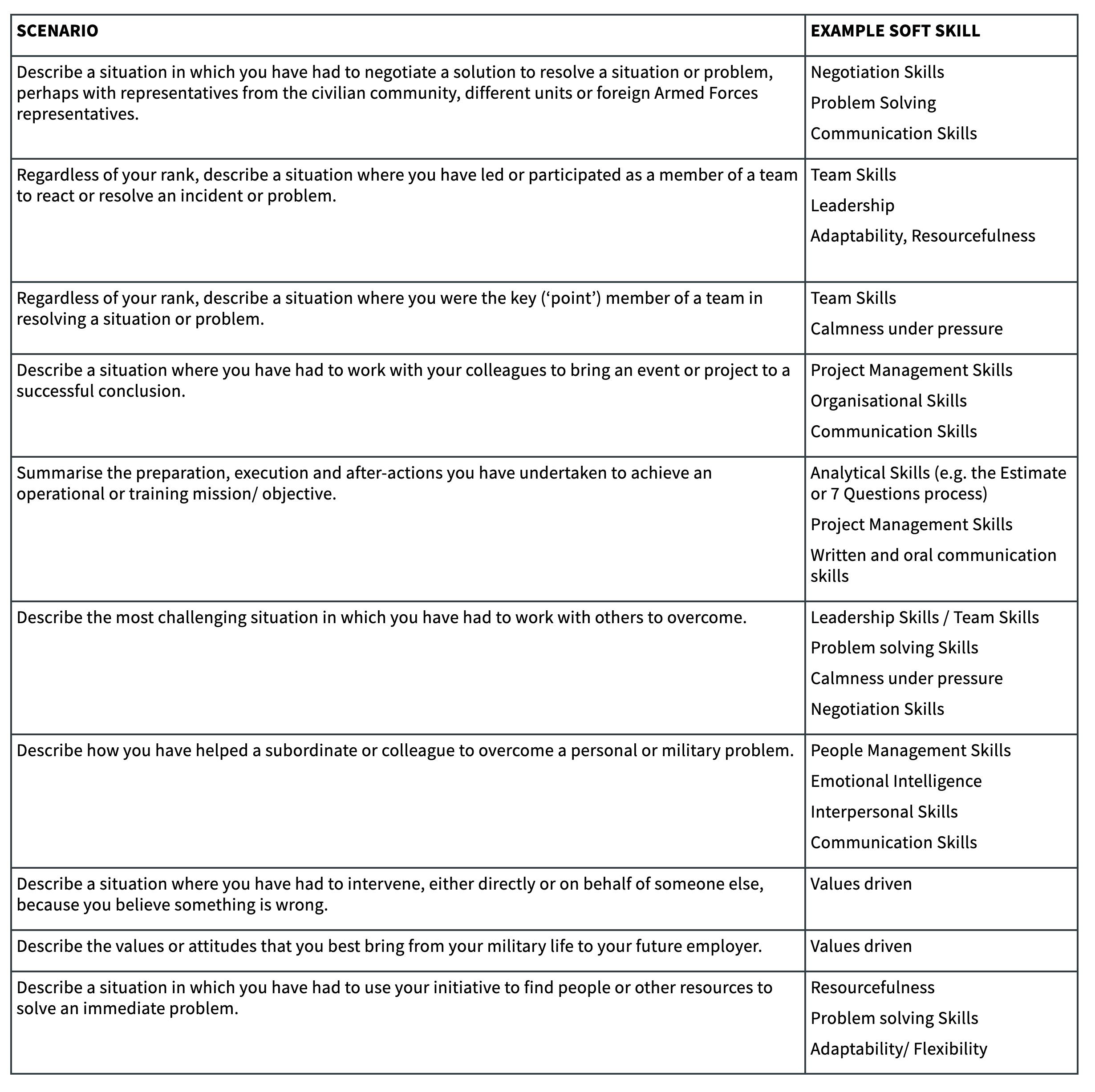 - Explore your military experience and pull out stories that prove your skills